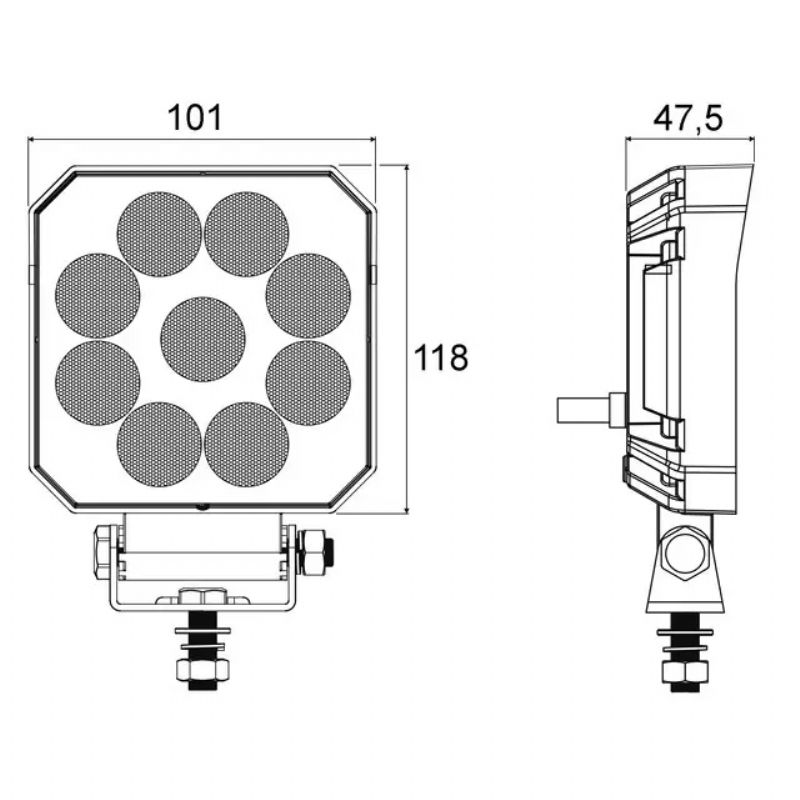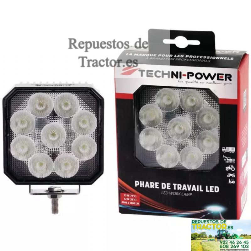 Foco de trabajo LED cuadrado con una potencia luminosa de 2800 a 3800 lúmenes y 9 LEDs Osram.