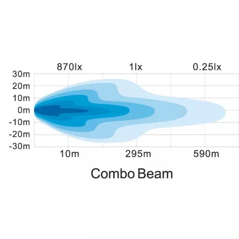 Barra de luces Led. Combinación de iluminación de 90º con los Led externos en la rampa y de 8º lejanos con los Led ubicados en el centro de la rampa.
